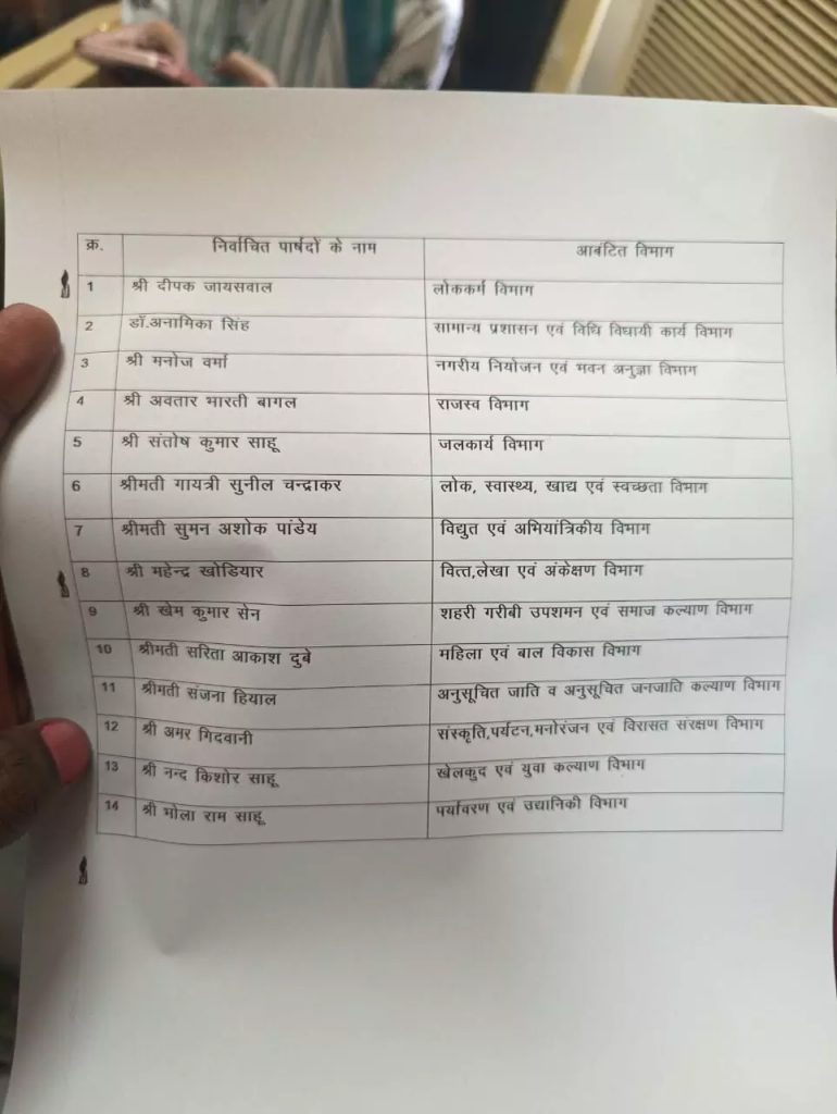 वहीं नए पार्षदों में खेम कुमार सेन, संतोष साहू, जैसे पहली बार पार्षद बने कैंडिडेट के नाम शामिल है। रायपुर निगम में 70 वार्ड पार्षद हैं। वार्ड के अनुपात में 20 प्रतिशत पद MIC के लिए निश्चित किए गए हैं।